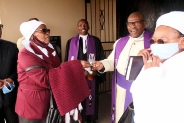 Ms D. Nxumalo giving the keys to Presiding Bishop Dr M.M. Dladla